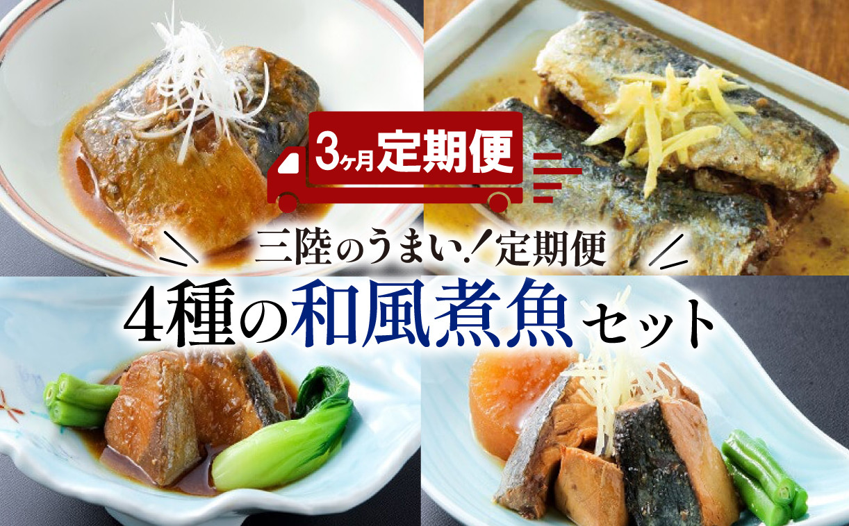 【定期便 / 3ヶ月】 和風煮魚詰合せ (4種×各2パック) × 3回 さば 鯖 いわし 鰯 ぶり 鰤 レトルト お惣菜 常温 備蓄 簡単調理