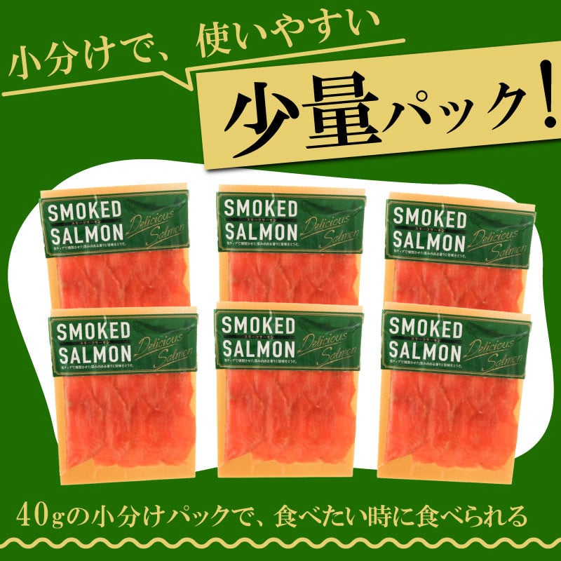 小分け&スライスされているので使いやすい! サーモン スライス 40g×6パック 小分け ( 計 240g ) 冷凍 鮭 サケ 魚 スモークサーモン トラウトサーモン 岩手県 大船渡市