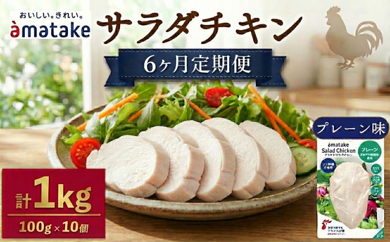 抗生物質オールフリー アマタケのサラダチキンをお届け! 【 定期便 / 6ヶ月 】サラダチキン (プレーン味) 100g ×10袋 (1kg×6回) 国産 鶏肉 機能性表示食品 冷凍 フランス赤鶏 皮なしむね肉 おかず 小分け ダイエット タンパク質 トレーニング アマタケ 限定 抗生物質 オールフリー 抗生物質不使用 保存食 むね肉 置き換え 低カロリー