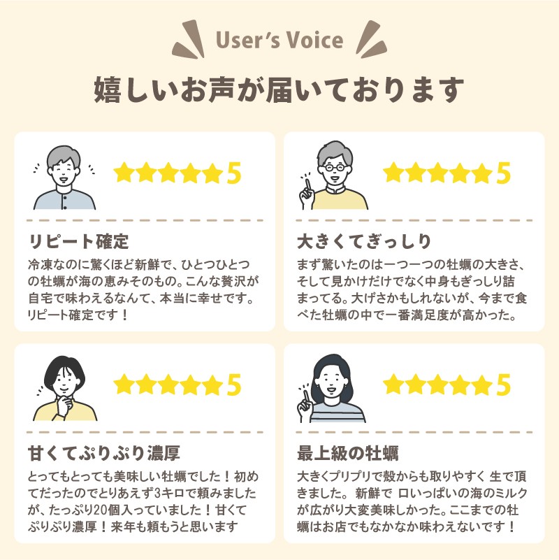 今住んでいる京都の近隣スーパーでは生食用牡蠣はまだあまり出回っておりませんので(ただいま11月です)、とても助かりました。ことしは他の産地も味見しますので、また、来年お世話になります。