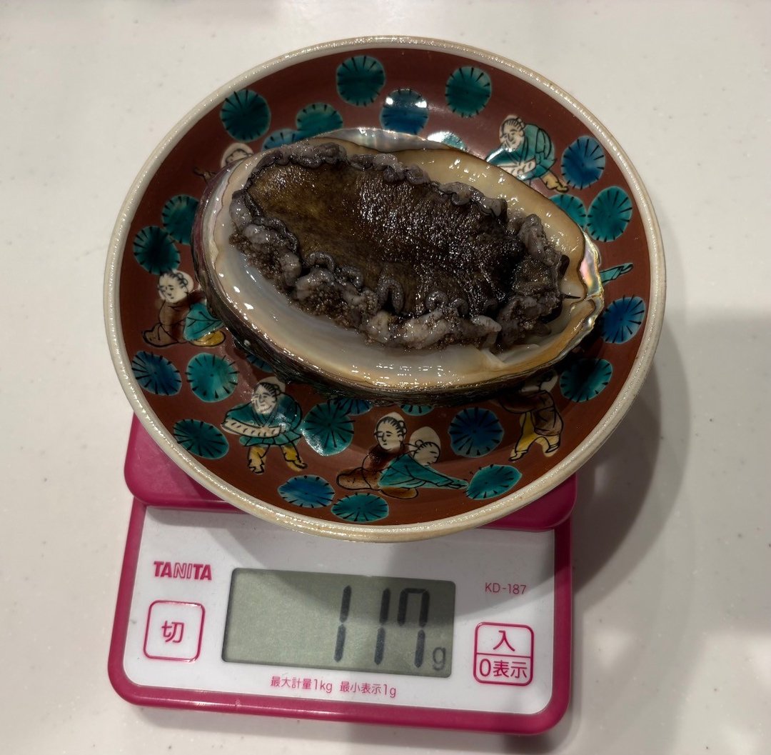 大きい鮑が3つ入っていた。バターしょうゆ焼きや刺身などさまざまな調理で食べたが、とても新鮮で美味しかった
