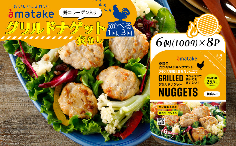 | 容量 | ※単品、定期便をお選びください ・衣なしナゲット6個入れ(100g)×8p ・衣なしナゲット6個入れ(100g)×8p×3ヶ月定期便 |