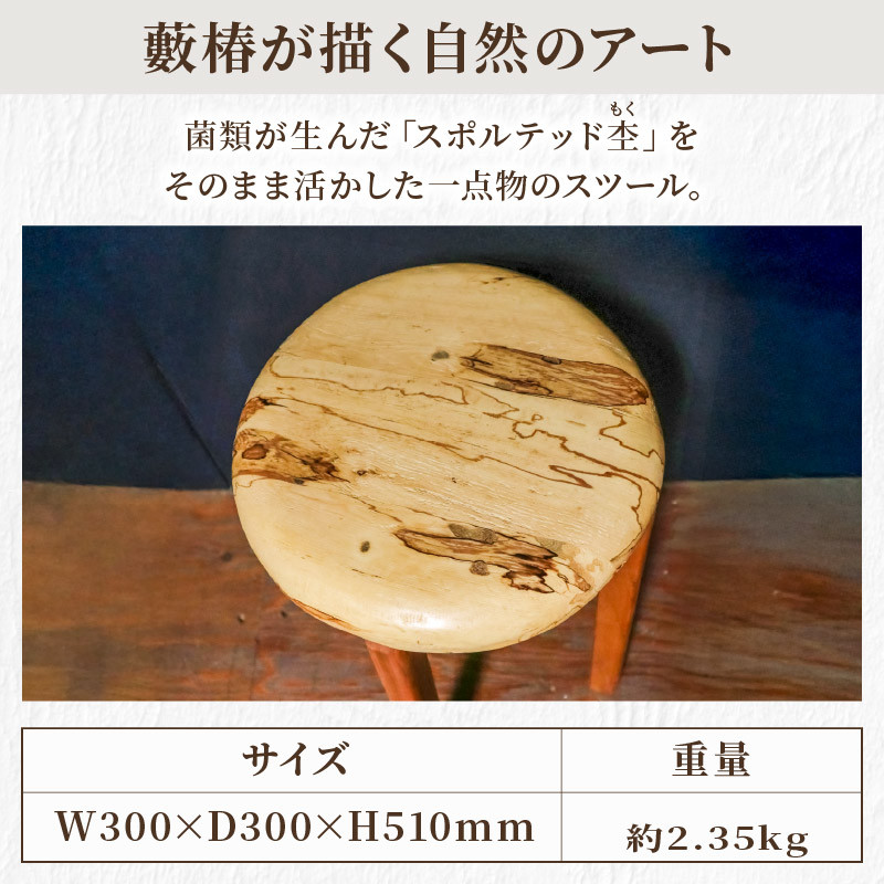 大船渡産ヤブツバキの”Spalted wood”で、スツールを作成しました。