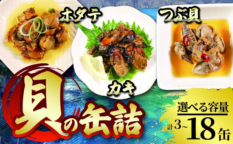 \海の幸を缶詰に/ 缶詰3種セット ( 燻製ほたてオイル漬 / かき燻製オイル漬 / うま煮つぶ貝 ) 3個~18個 選べる個数