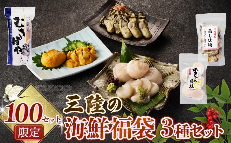 NEW 年内配送 三陸の海鮮福袋 3種セット ホタテ貝柱200g 蒸し牡蠣20…