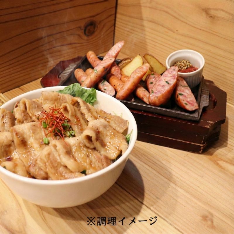 ハンバーグや行者ニンニクを合わせたウインナー、フランクフルト、オリジナルのたれが自慢の豚丼が楽しめます。