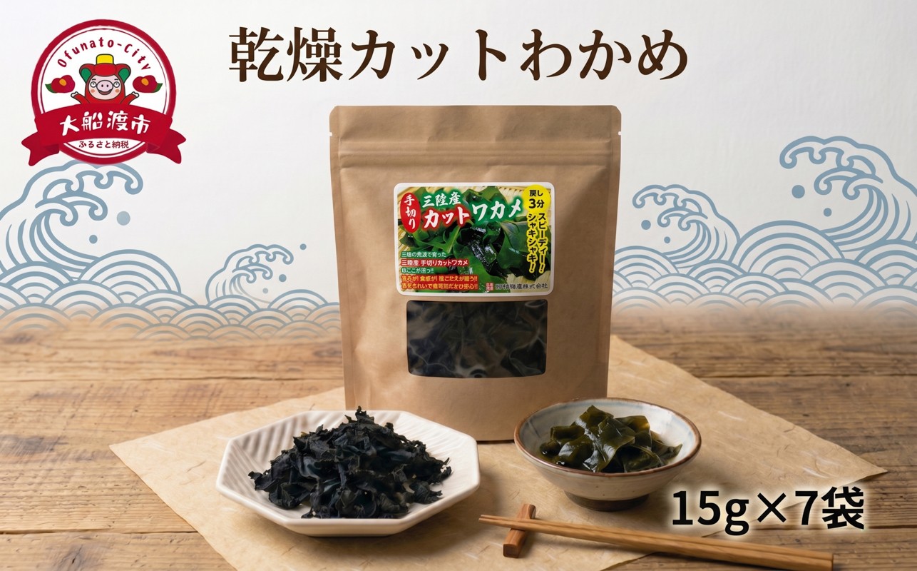 三陸産の良質わかめ! 乾燥カットわかめ 7袋(15g×7袋) わかめ ワカメ 若芽 wakame 小分け 湯通しわかめ 海藻 海産物 味噌汁 乾燥 ごはん 夕飯 おかず サラダ お刺身 刺し身 刺身 被災 震災 火災 支援 災害 復興 三陸 国産 産地直送 岩手県 大船渡