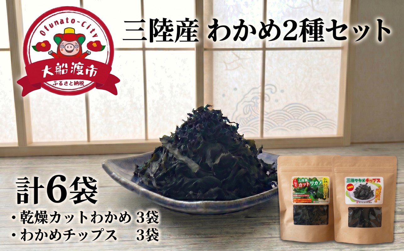 三陸産の良質わかめ! わかめセット6袋 (カットわかめ3袋 / わかめチップス3袋) チップス わかめ お菓子 ワカメ 若芽 wakame 小分け 海藻 海産物 乾燥 サラダ おつまみ 肴 つまみ チップ チップス 菓子 1袋15g 個包 被災 震災 火災 支援 災害 復興 三陸 国産 岩手県 大船渡