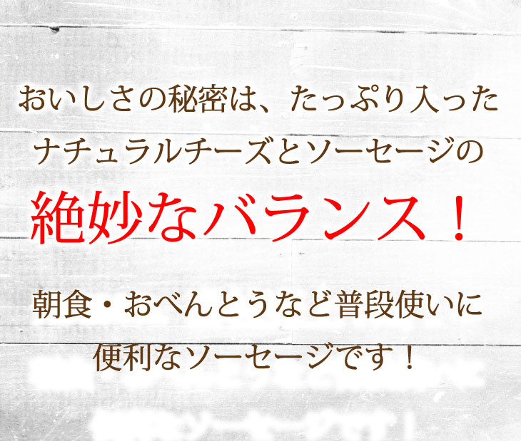 おいしさの秘密は、たっぷり入ったナチュラルチーズとソーセージの絶妙なバランス!朝食・おべんとうなど普段使いに便利なソーセージです!