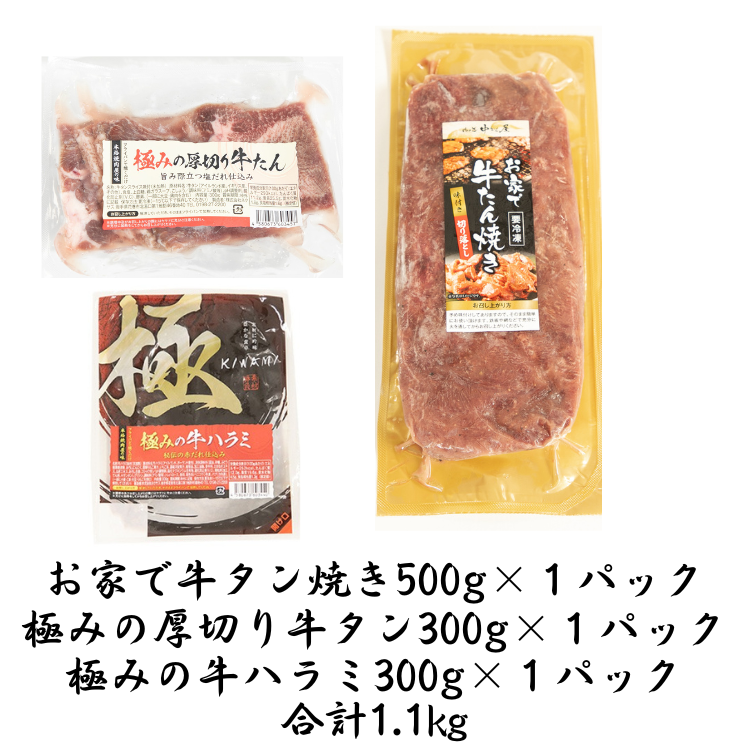 人気のタンとハラミを各1パックずつ1.1㎏セットでお届け!