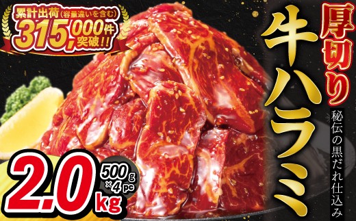 厚切り牛ハラミ2kg(500g×4パック) 焼肉 BBQ 【855】