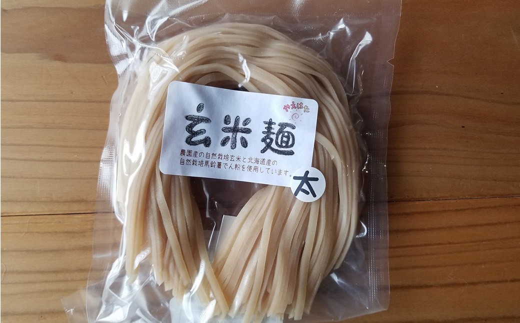 やえはた自然農園の自然栽培玄米で作られた半生麺タイプの玄米麺です。