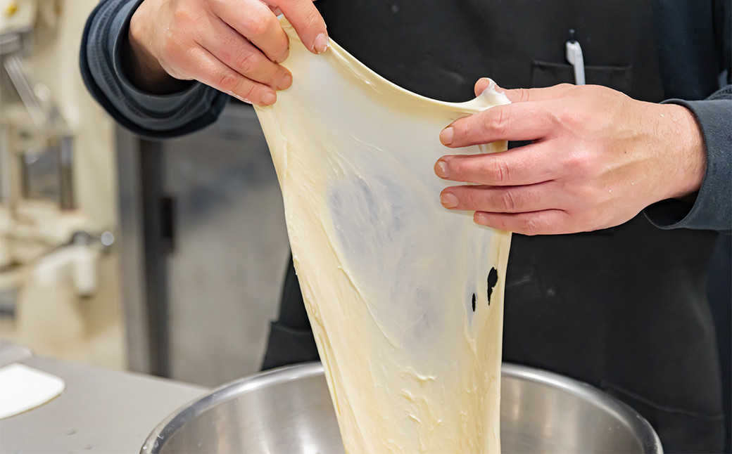 小野寺シェフが本当に苦労したのは水を使わないこと。そして小麦粉を岩手県産にこだわることでした。牛乳だけではなかなか焼き上がりが膨らまずにイメージどおりの食感が出ないため、何度も試作を繰り返すことになります。そして完成したのが強力粉に近い銀河のちからと、中力粉のテリアのブレンドでした。