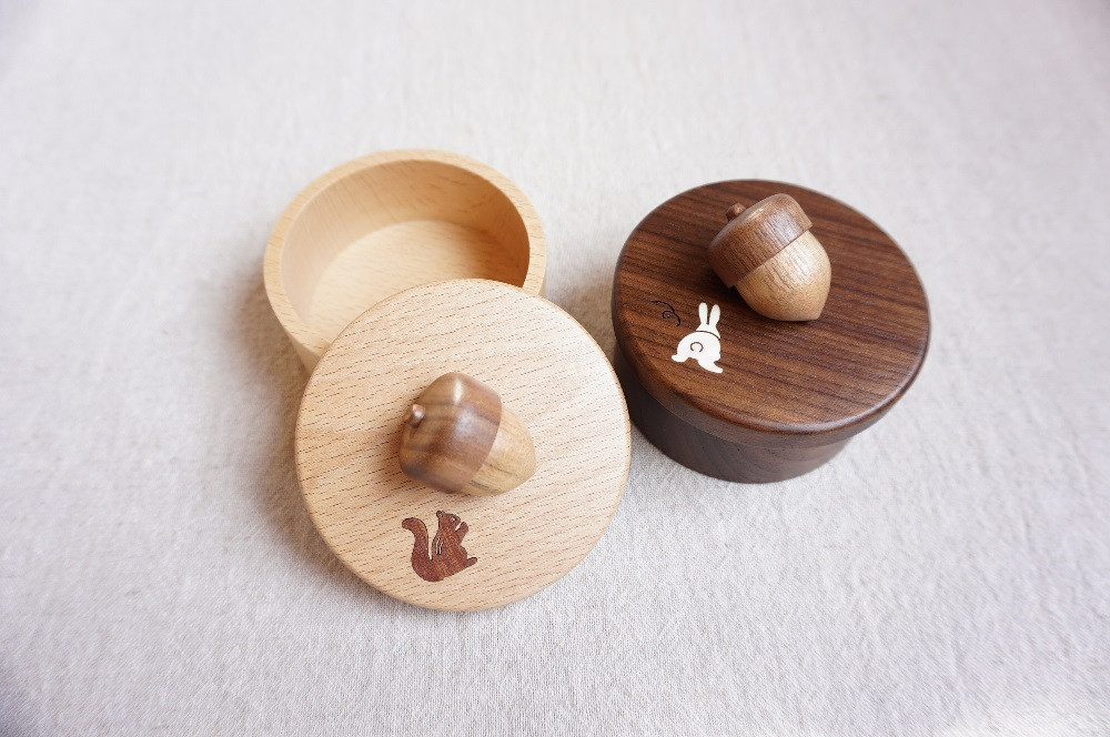 | 容量 | どんぐりの小箱1個(直径8.5×高さ約7cm、重さ125g) ※[りす]または[うさぎ]どちらか選択 【素材】 [りす]ブナ [うさぎ]ウォールナット ※ギフト箱入り  |