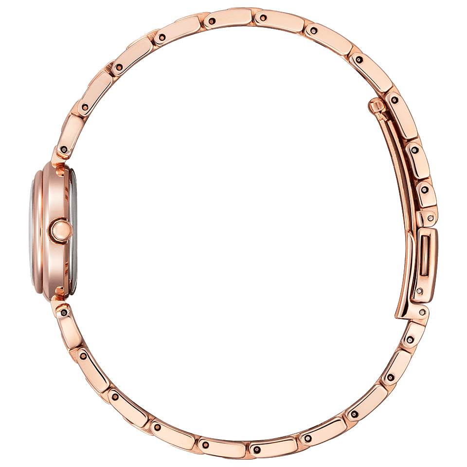 雫のようにつややかでころんとしたフォルムが上品で可愛らしい印象のモデルです。ケース径は、21.5mmの小さめサイズ。繊細なトーンの文字板には、雫をイメージしたカットパーツをセッティング。やわらかく軽やかなデザインのインデックスが手元を美しく彩ります。バンドの長さ調節が簡単なシンプルアジャスト仕様ですので、ギフトにもオススメです。