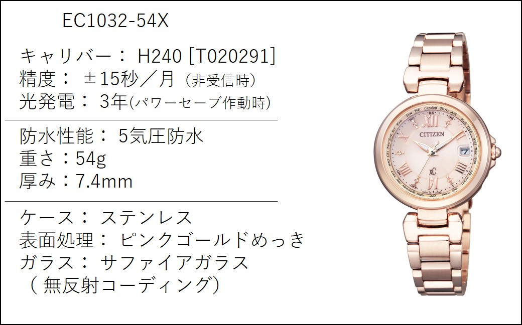 CITIZEN 光発電 エコドライブ 電波時計 レディース 時計 シチズン腕時計 XC ( クロスシー ) EC1032-54X basic collection JIS1種耐磁 衝撃検知機能 針自動補正機能 光発電 ソーラー エコ・ドライブ ワールドタイム機能 防水 松村時計店 岩手県 北上市 R0096