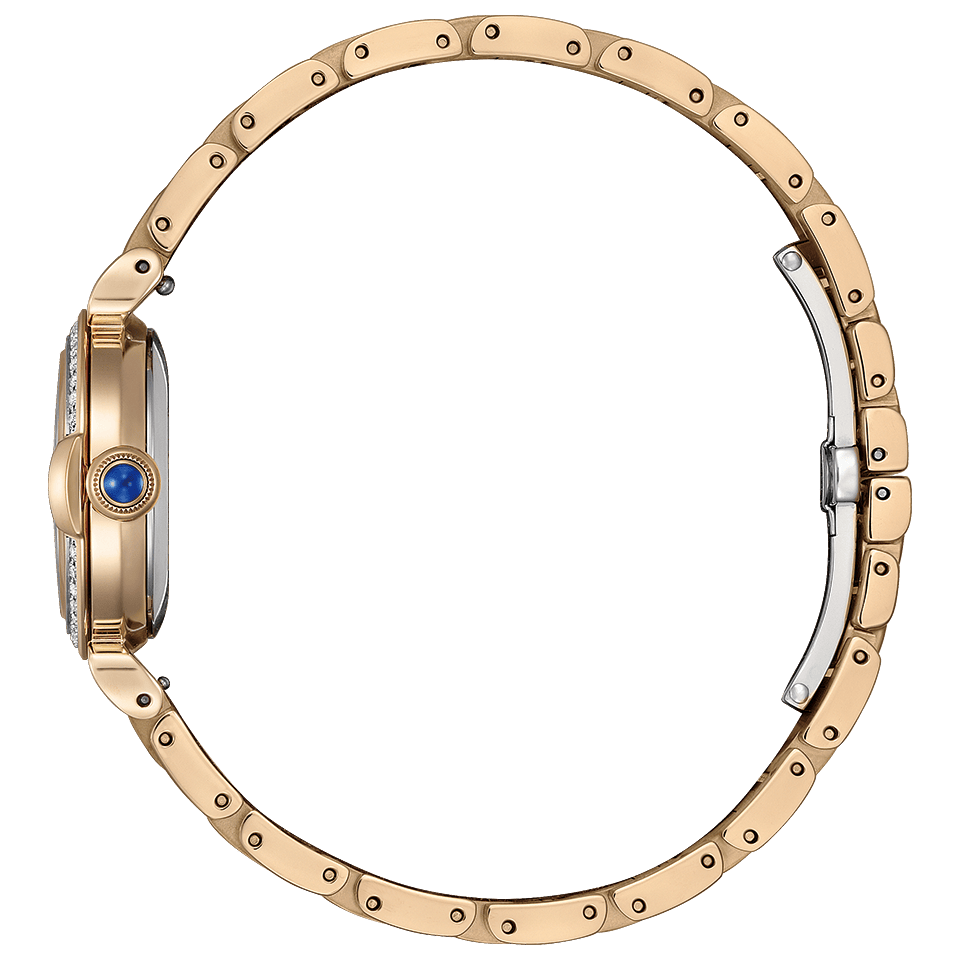 スズランがモチーフで人気のあるROUND Collectionからミニサイズモデルが登場。ベゼルに直径1.1mmの天然ダイヤモンドを39個敷き詰めた存在感のあるケースが、手元をひときわ華やかに彩るジュエリーライクなデザインです。