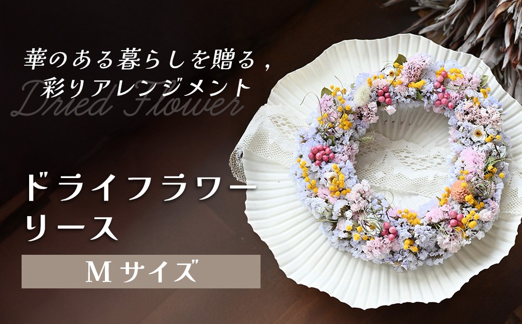 彩りドライフラワーアレンジメント ドライフラワーリース(Mサイズ) 花 ドライフラワー お花 贈り物 母の日 アレンジメント フラワー ギフト フラワーアレンジメント プレゼント 贈答 包装 岩手県 北上市 華れ D0529