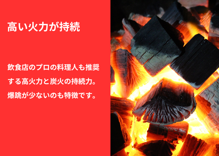 飲食店のプロも推奨する、高い火力と安定した炭火が特徴。