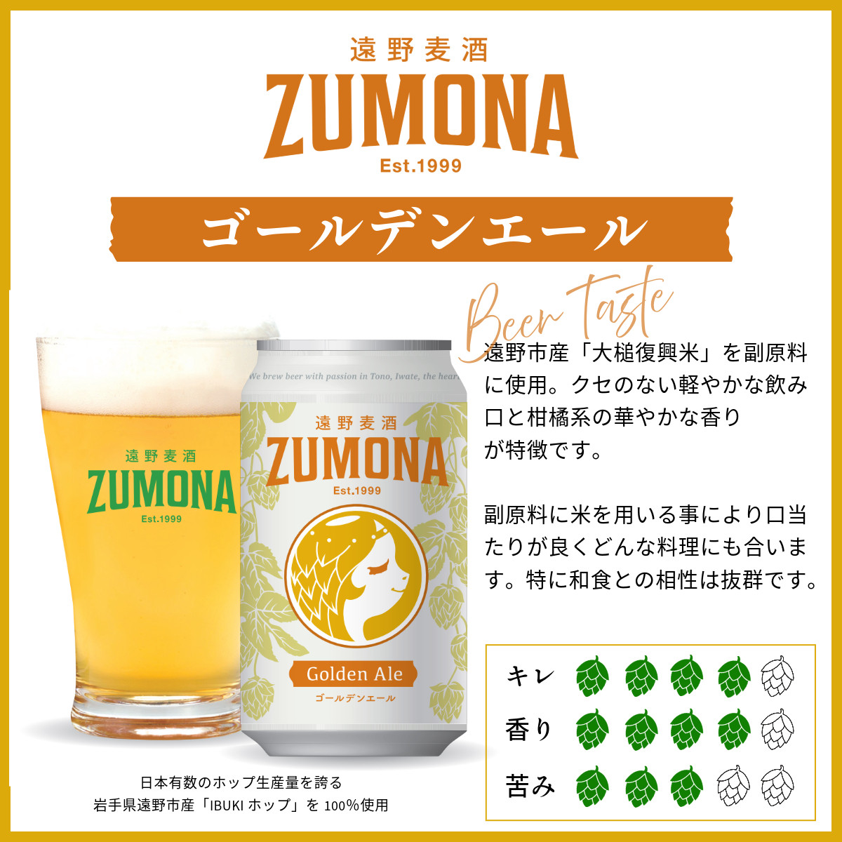クラフトビール 24缶 遠野麦酒ZUMONA ゴールデンピルスナー 350…36,000 円 【リニューアル新発売】遠野産ホップを使用した爽やかな飲み口の地ビール - 常温便