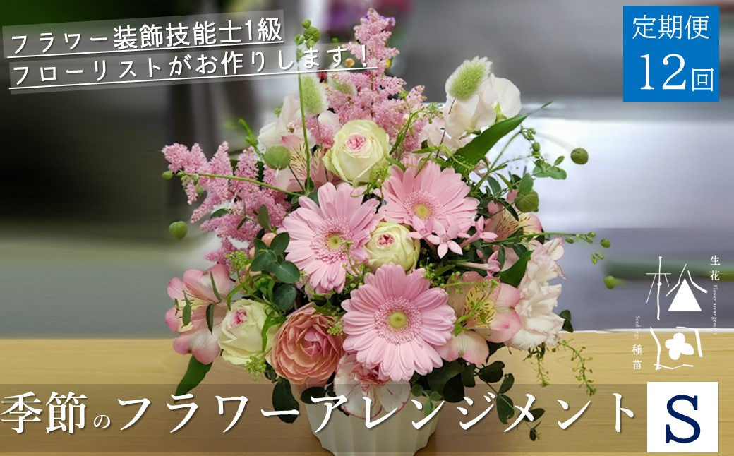 フラワー装飾技能士1級の資格を持つフローリストが作るフラワーアレンジメント 【 定期便 12ヶ月 】季節のフラワーアレンジメント Sサイズ 合計12回【松田生花店】