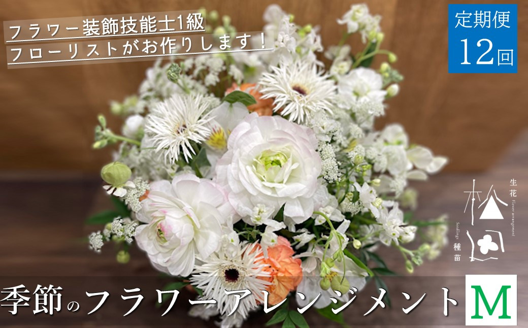フラワー装飾技能士1級の資格を持つフローリストが作るフラワーアレンジメント 【 定期便 12ヶ月 】季節のフラワーアレンジメント Mサイズ 合計12回【松田生花店】