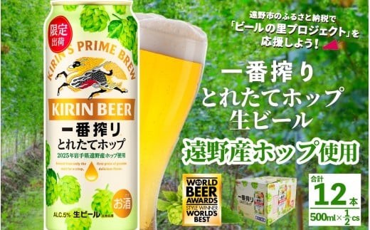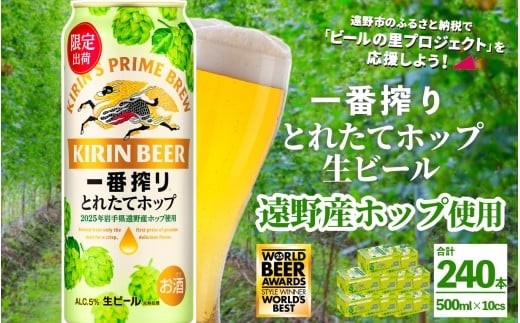 岩手県遠野市で今年収穫したばかりのホップを使用。期間 数量 限定出荷! キリン 一番搾り とれたてホップ 生ビール 500ml × 24本 10ケース < 遠野産ホップ 使用 > 限定 ビール お酒 BBQ 宅飲み 家飲み 晩酌 ギフト 缶ビール KIRIN 麒麟 きりん キリンビール 人気 < ビールの里 農家 支援 応援 > WBA2025 International Lager 世界一