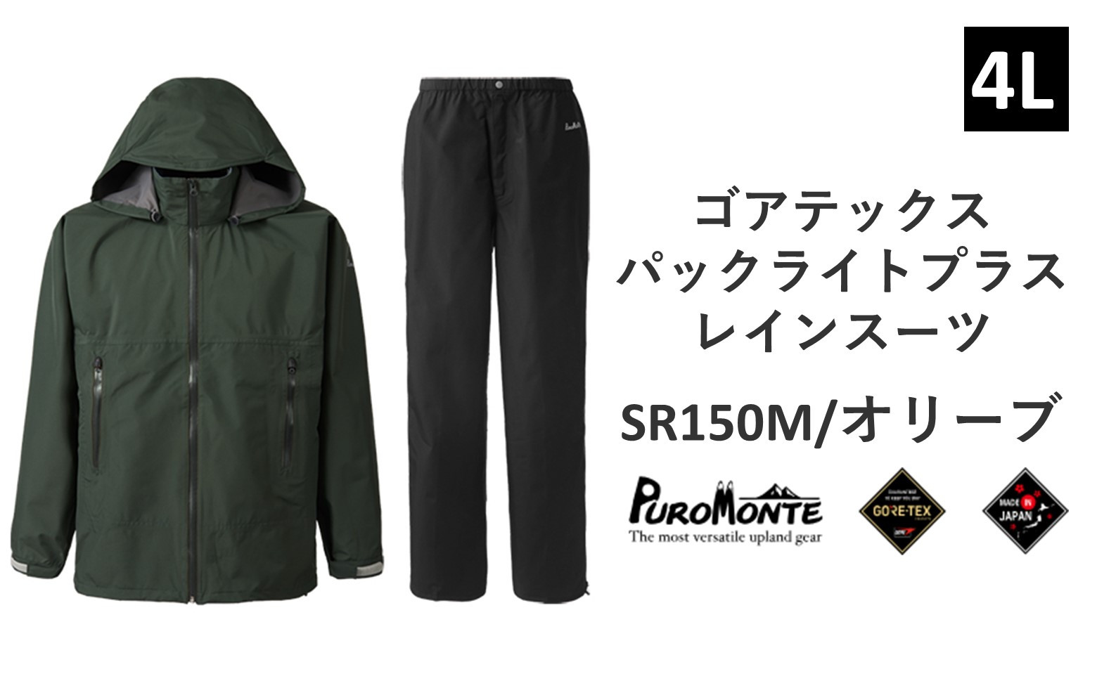 世界最高水準の防水透湿素材 ゴアテックス 使用のジャケット! プロモンテ ゴアテックス パックライトプラス レインスーツ SR150M オリーブ 4Lサイズ メンズ (PUROMONTE GORE-TEX RAIN WEAR) アウトドア キャンプ BBQ ブランド 登山 トレッキング ブランド品