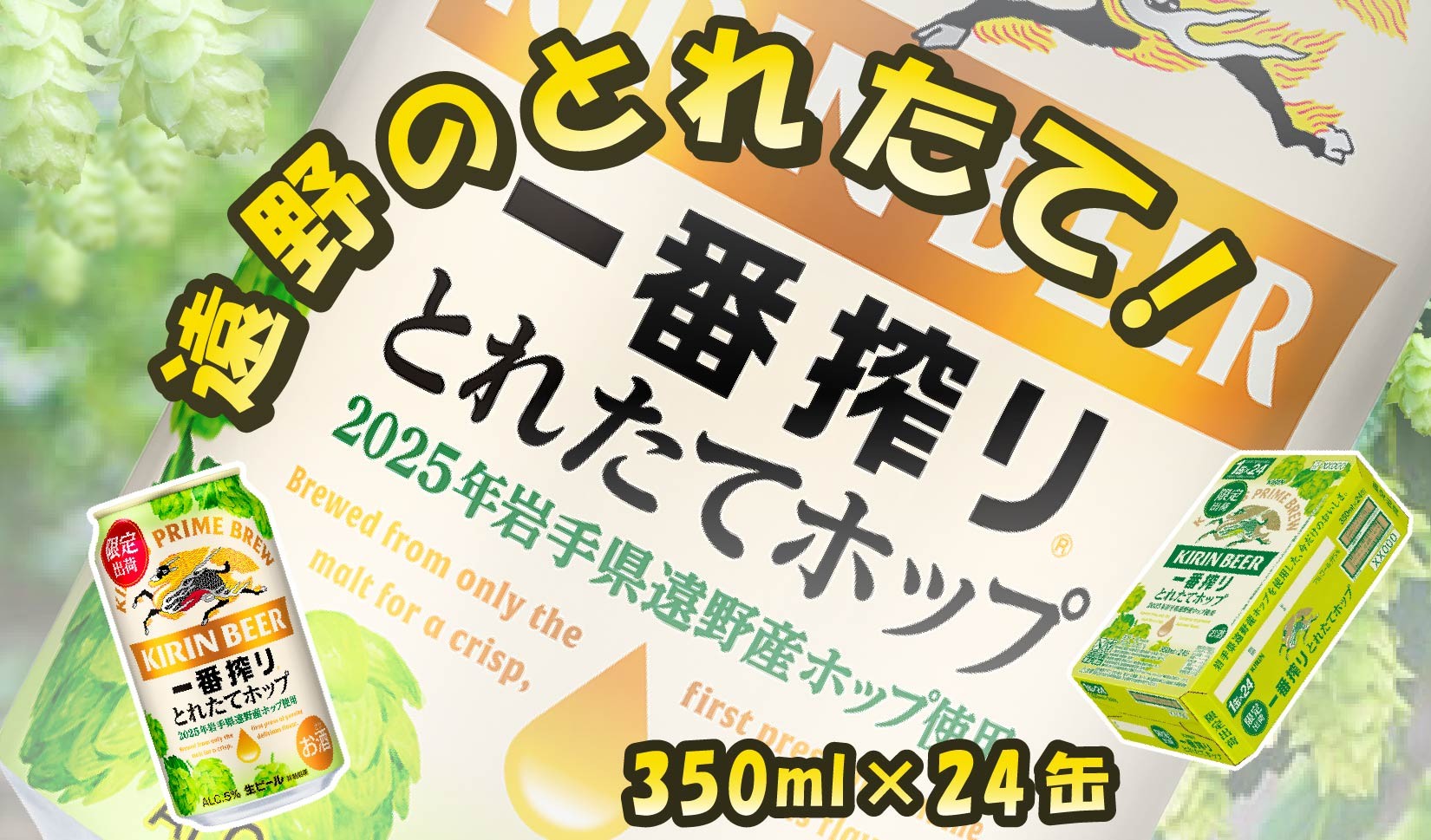 数量限定!とれたてホップならではの旬の味わいをお楽しみください! キリン とれたてホップ 一番搾り 生ビール 350ml × 24本(1箱)/ 有限会社松田酒店 岩手県 遠野 産 ホップ 使用 キリンビール ギフト お歳暮 クリスマス お祝い 数量限定
