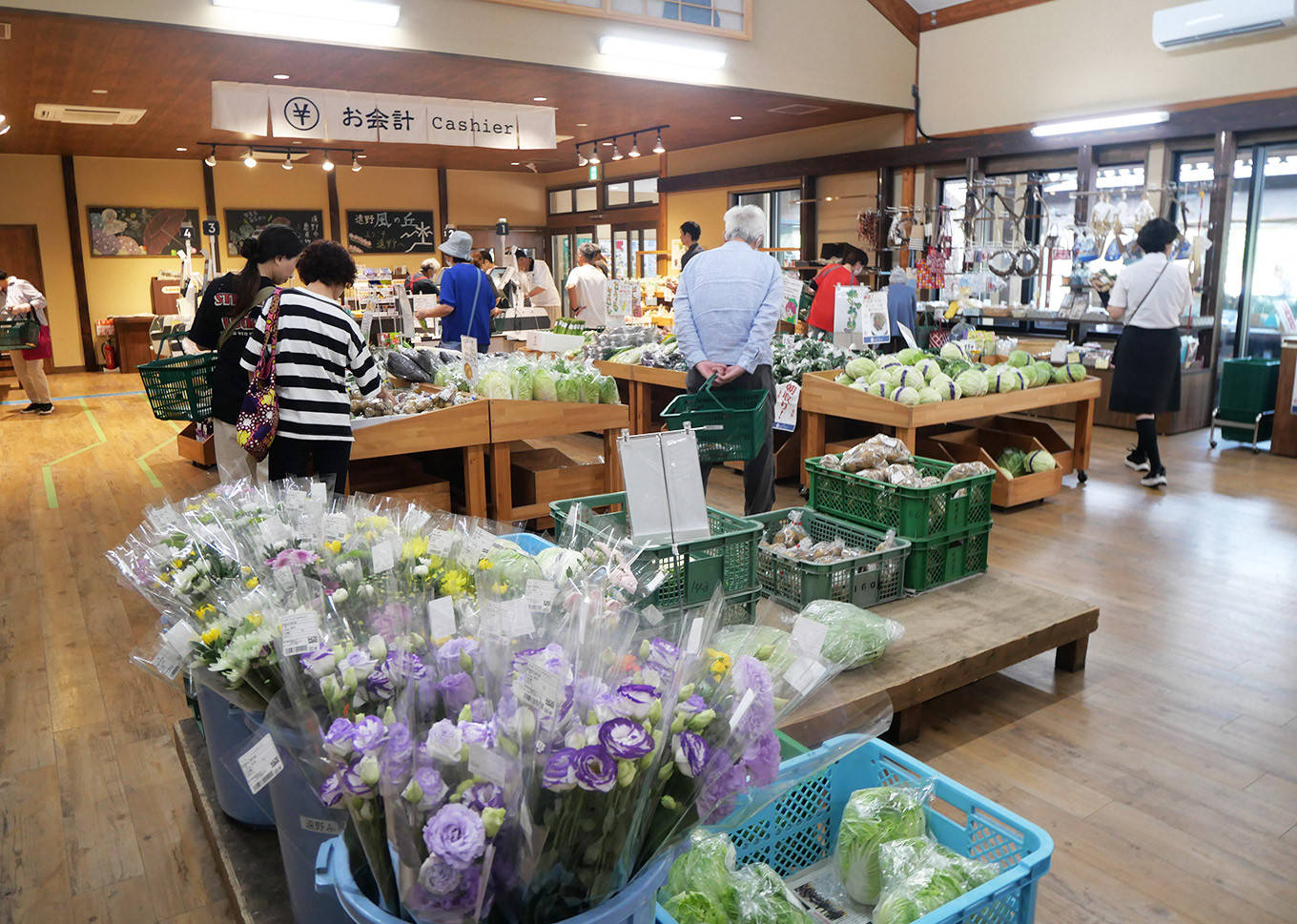 遠野市に来られた際は、道の駅「遠野風の丘」産直・物産ホールに是非お立ち寄りください。四季を通して豊かな大地で育った農産物や山菜、キノコ、花卉の苗、切花、木工製品などを取り揃えてお待ちしております。