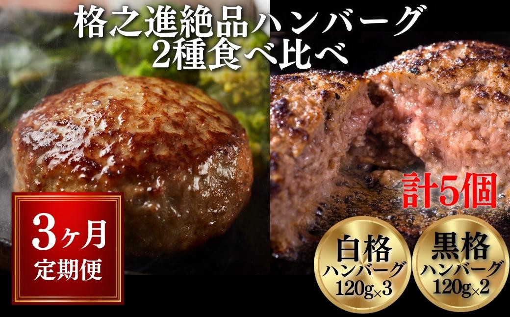 チョイスPayポイントと交換できる品 【定期便/3ヶ月】《格之進》絶品ハンバーグ【白格・黒格】食べ比べセット(120g)計5個×3回お届け プレミアム お弁当 個包装 お惣菜 小分け 子供 簡単調理 肉 岩手 一関 贈り物 ギフト お取り寄せ 冷凍 人気