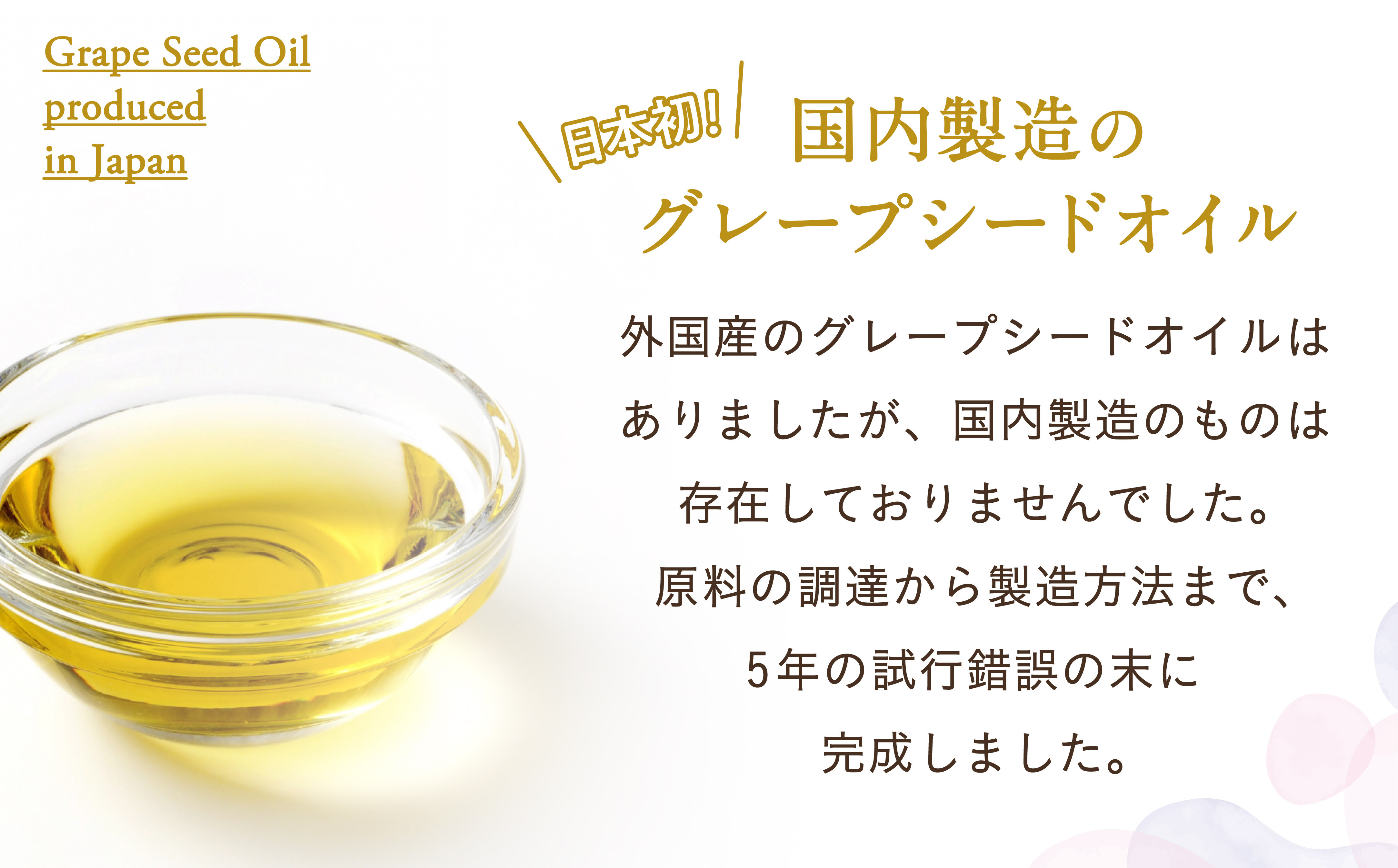 ジャパングレープシードオイルは構想から5年、ようやくご紹介させていただけることになりました。
