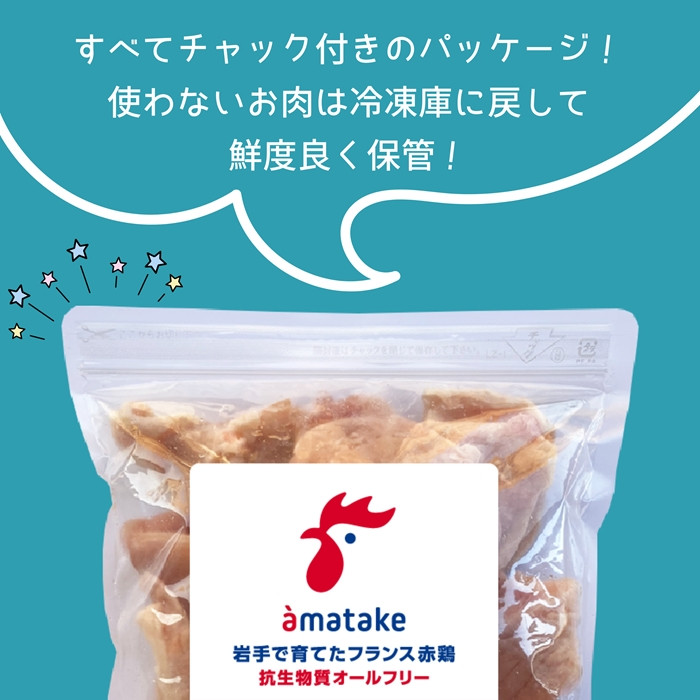 赤鶏特有の旨みとコクの豊かさに、やわらかな食感を持ち合わせた安心・安全にこだわった抗生物質オールフリーの鶏肉です。 お肉1切れ1切れがバラバラに凍結されているので、冷凍のまま使いたい時に使いたい量を取り出せます。 チャック付きパッケージだから、使わないお肉は再び冷凍庫に戻して鮮度良く保管できます。