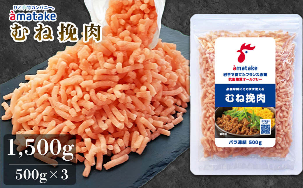 国産鶏ひき肉 むね肉で高たんぱく低脂質 鶏ひき肉 むね肉 国産 岩手県産 アマタケ フランス赤鶏 500g×3袋 計1.5kg バラ凍結 小分け 冷凍 鶏肉 挽肉 高たんぱく 低脂質 ヘルシー ダイエット 筋トレ 料理 便利