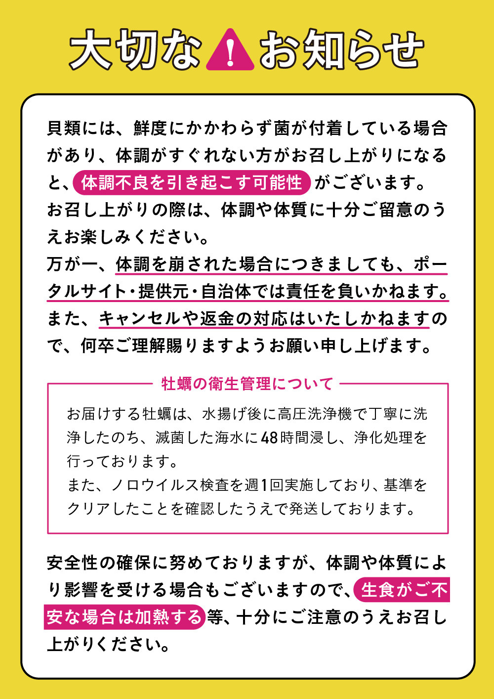 ※入金確認のタイミングや貝毒の影響により、ご希望の期日に出荷できない場合がございます。その際には再設定依頼のご連絡をいたします。