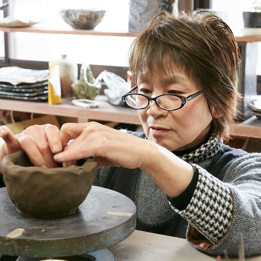 すべての作品は、ろくろを使わず、手びねりの技法で一つひとつ丁寧に形作られています。同じものは二つとない、あたたかみと個性にあふれた器をお楽しみいただけます。