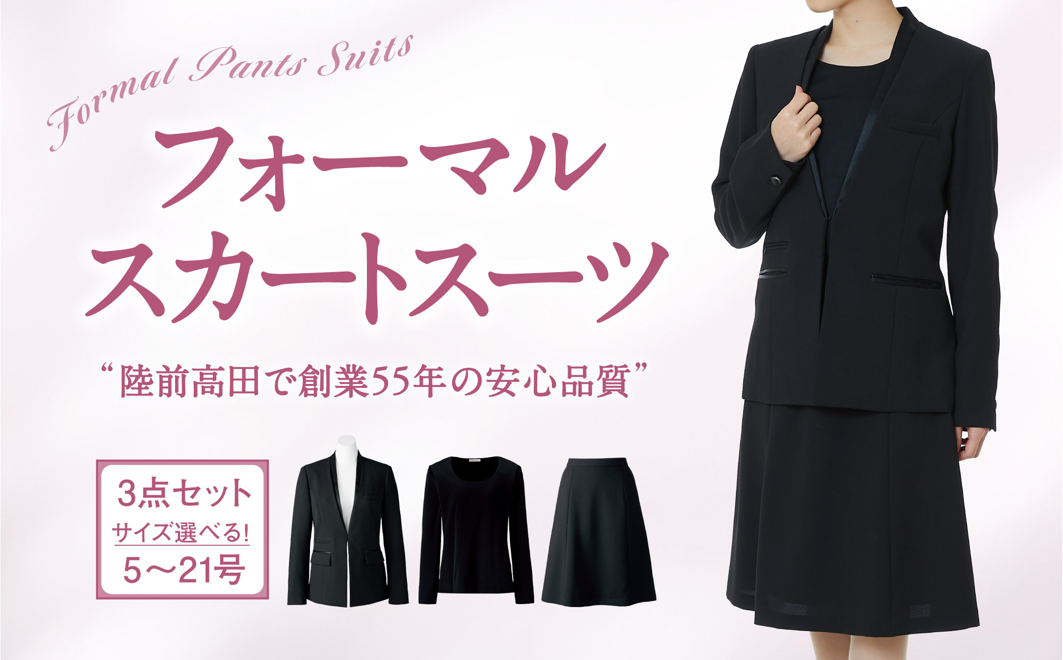 チョイスPayポイントと交換できる品 陸前高田市で創業55年のアパレル安心品質! 【陸前高田で縫製】レディース フォーマル スーツ(前ホックJK+ブラウス+スカート)(オールシーズン対応)