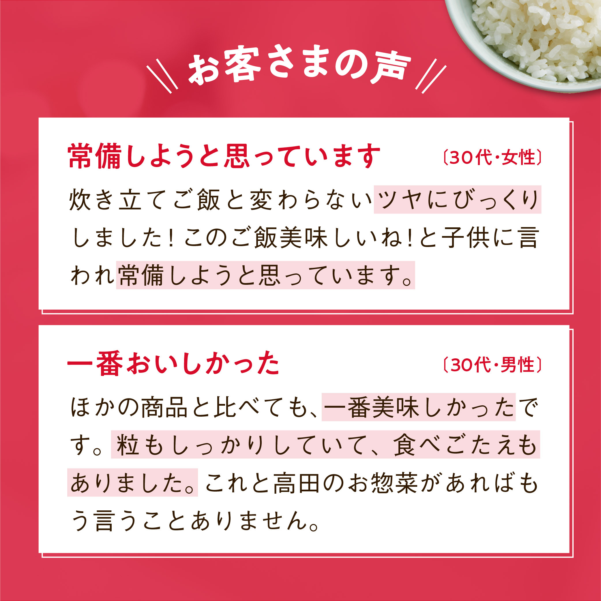 | 容量 | パックライス(品種:たかたのゆめ) 150g×24パックを6ヶ月お届け |