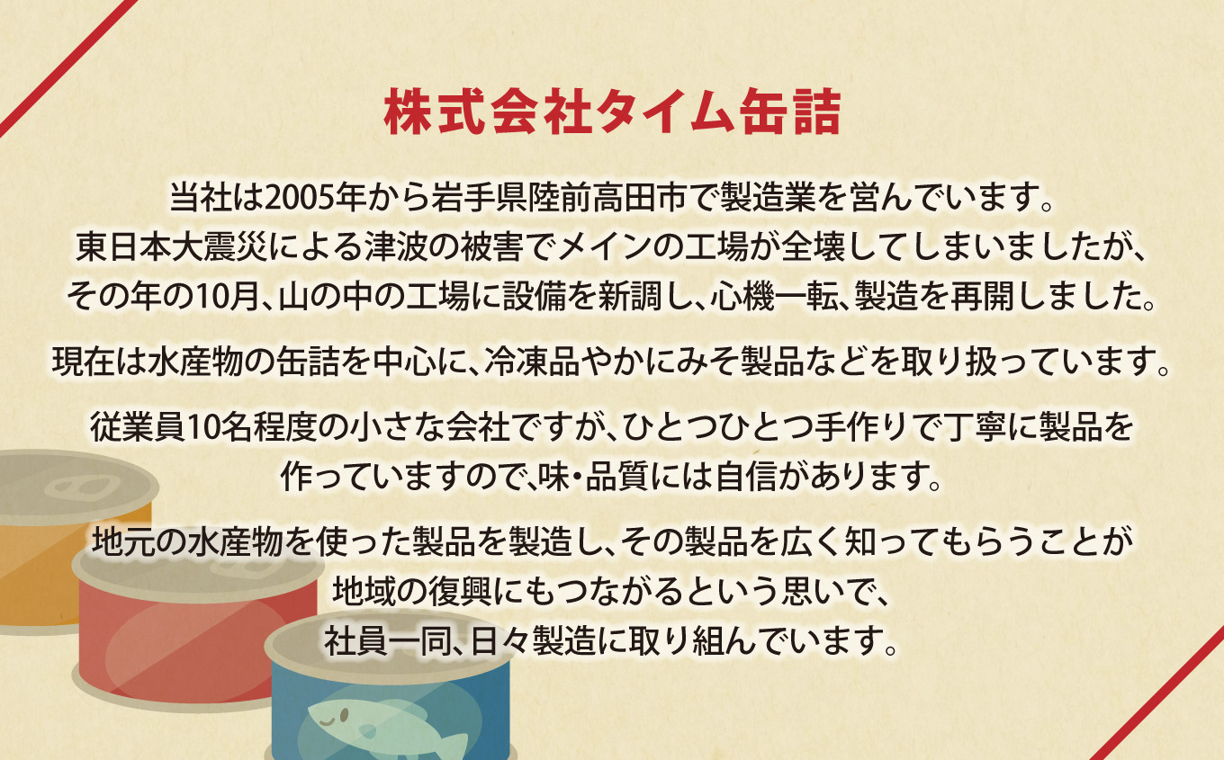 | 事業者 | 株式会社タイム缶詰 他のお礼の品を見る |