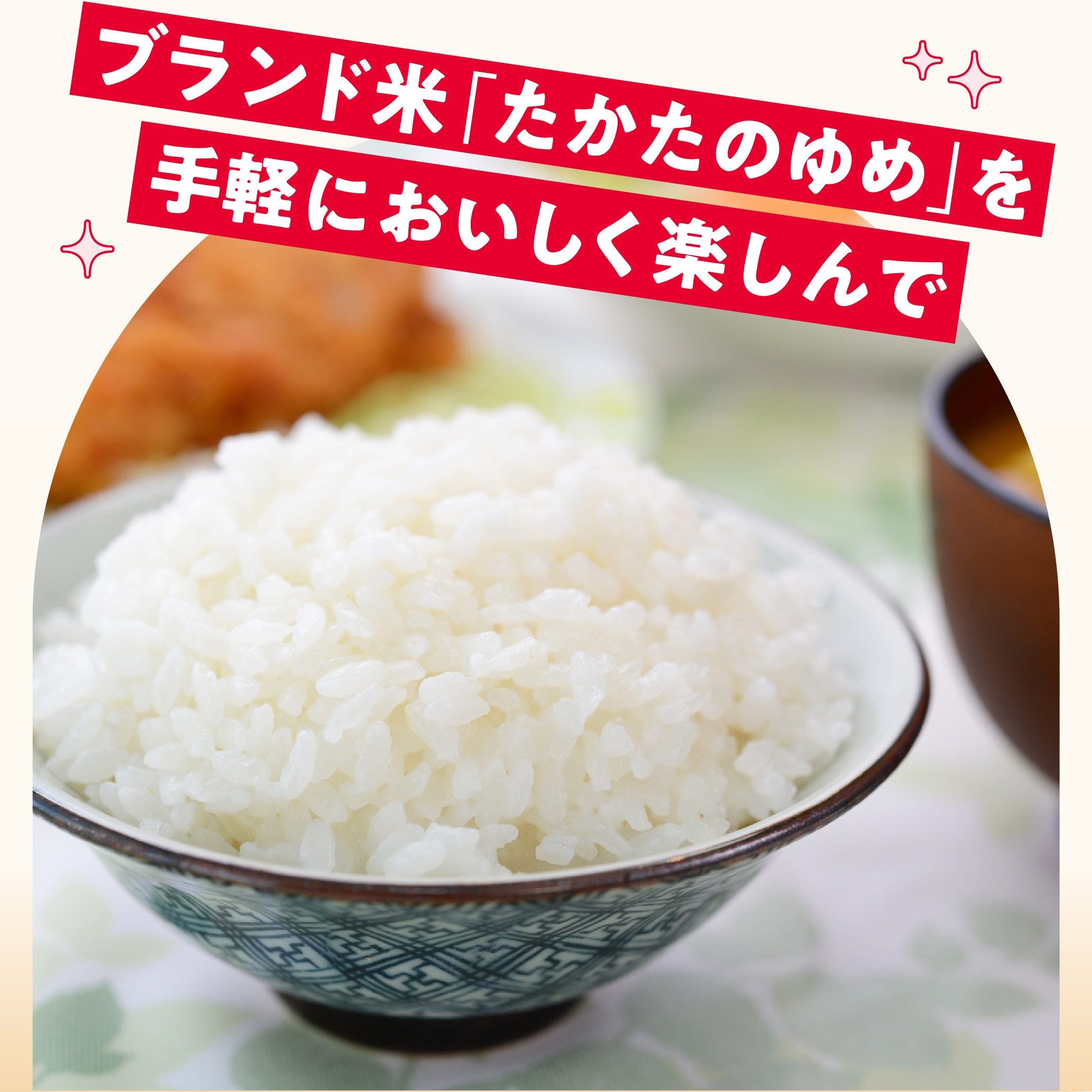 陸前高田市のおいしいブランド米「たかたのゆめ」がパックライスで新登場!レンジでチン!するだけで、いつでもお手軽に炊きたてホカホカのご飯をお召し上がりいただけるようになりました。