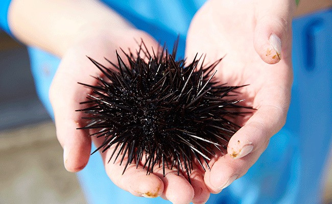 ウニ漁は6月~8月の限られた期間でしか行うことができません。地元漁師は限られた期間中に、小さな船に乗りながら海中を箱メガネで覗いて海底にいるウニを収穫します。雨や風が強くて海が荒れているときには漁ができないので、自然と漁獲日も量も限られることになります。
