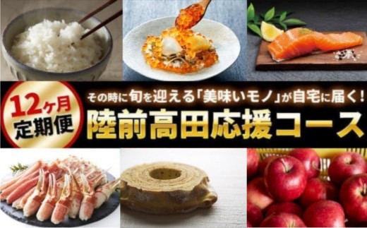 旬の時期に食べ頃の特産品を1年間毎月お届けする定期便コースです。毎月届く特産品を楽しみながら陸前高田市の応援をよろしくお願いします!