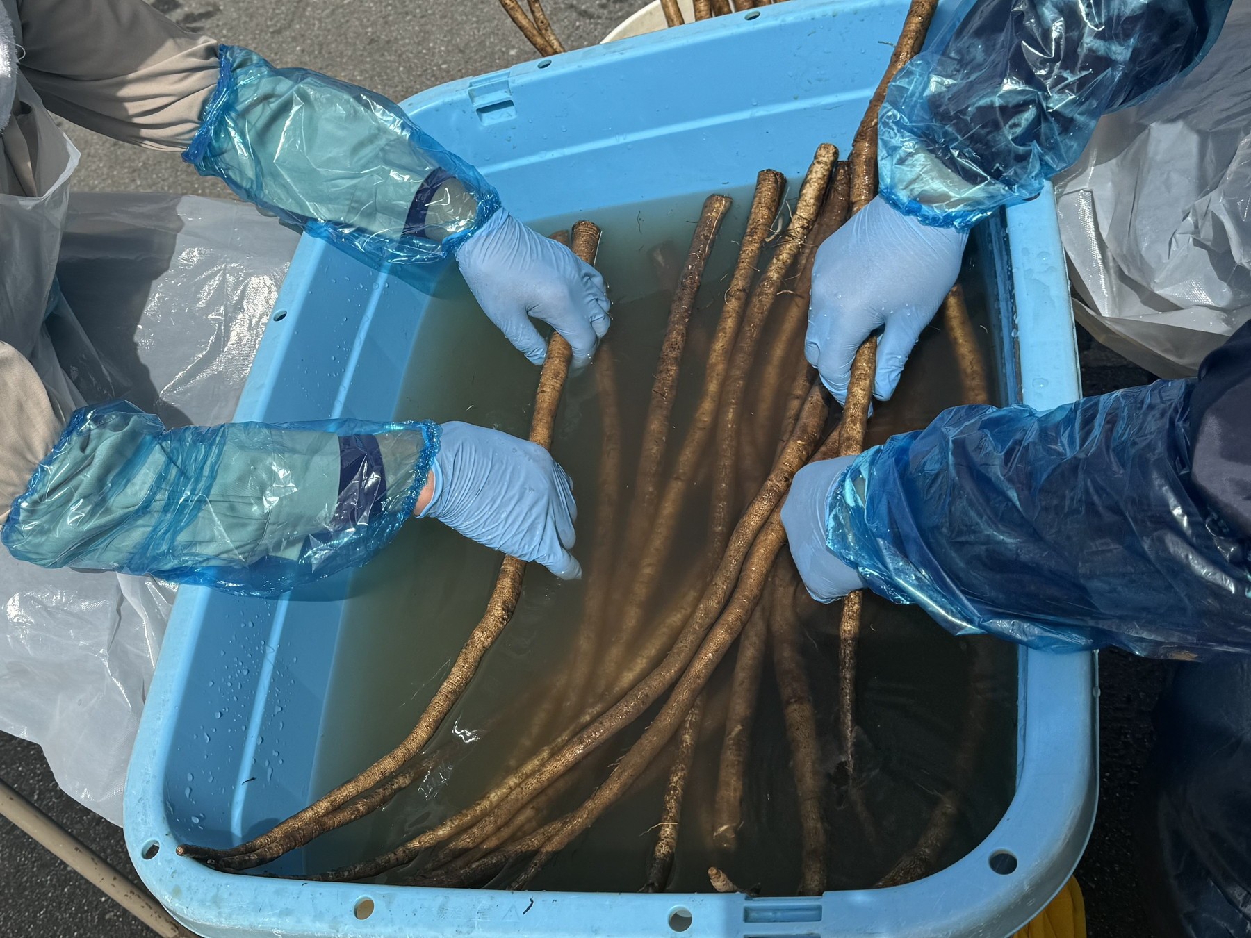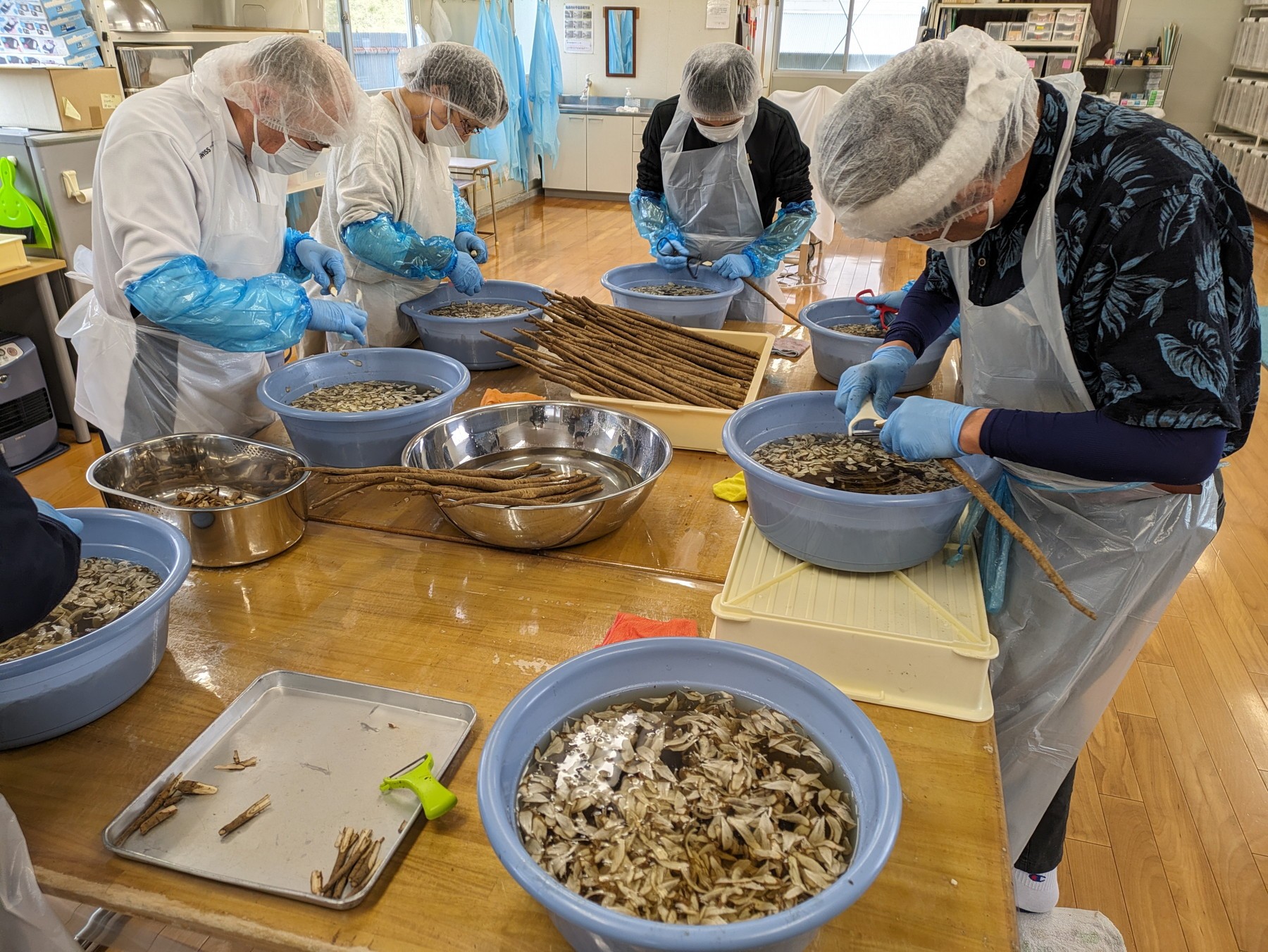ごぼうのささがき中です。一つ一つ丁寧に手作業で行っています。