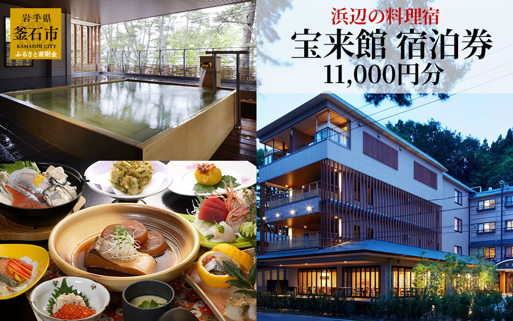 浜辺の料理宿「宝来館」でご利用いただける、11,000円分の宿泊券です。