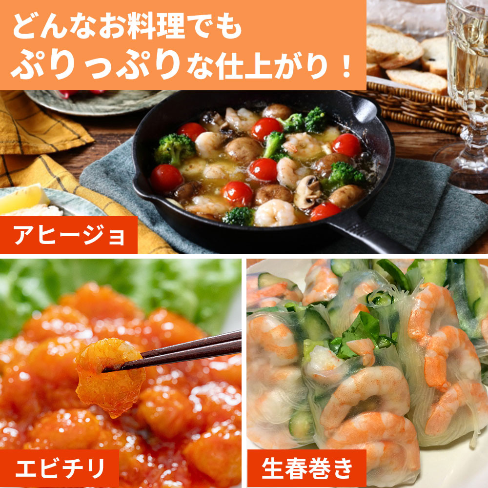頭と殻を除去済みですので、使いたい分だけ解凍してお召し上がりいただけます。