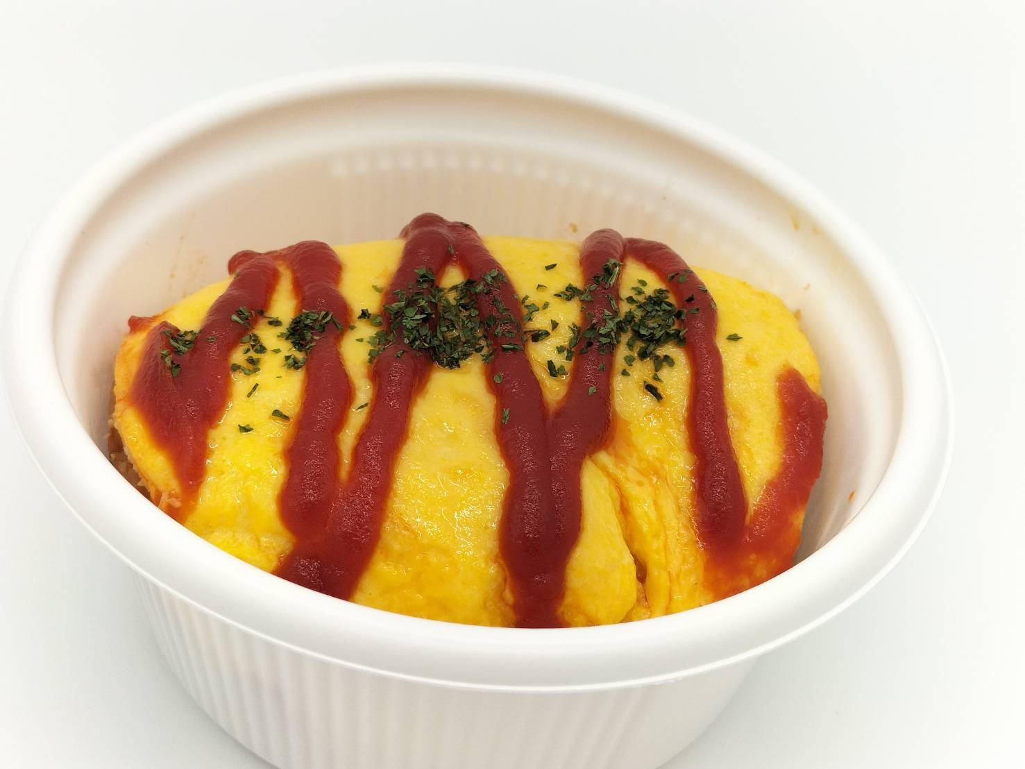 ご飯(米(国産))、卵、ケチャップ(トマト、糖類(ぶどう糖果糖液糖、砂糖)、醸造酢、食塩、香辛料)、玉ねぎ、鶏肉、牛乳、中濃ソース(野菜、果実(トマト、りんご、玉ねぎ、その他)、砂糖、醸造酢、食塩、しょうゆ、香辛料、たん白加水分解物)、砂糖、マヨネーズ(食用植物油脂、卵、醸造酢、砂糖類(粉末水あめ、砂糖)、食塩)、片栗粉(馬鈴しょでん粉)、コンソメ、パセリ/調味料(アミノ酸等)、増粘剤(加工でん粉)、香辛料抽出物、カラメル色素、(一部に小麦、卵、乳成分、大豆、りんご、牛肉、鶏肉を含む)