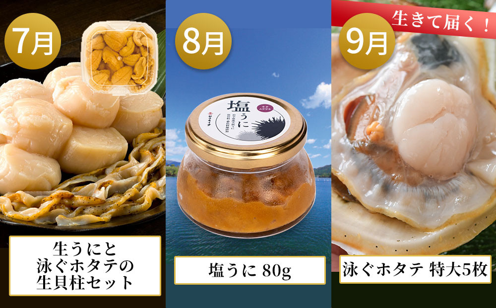 【焼うに・塩うに・泳ぐホタテの貝柱】