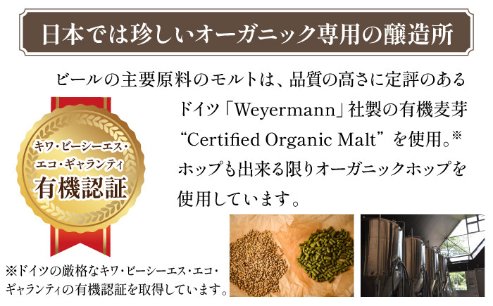 ビールの主要原料のモルトはJAS有機認証を得たドイツ産の有機麦芽を使用し、ホップも出来る限りオーガニックホップを使用しています。