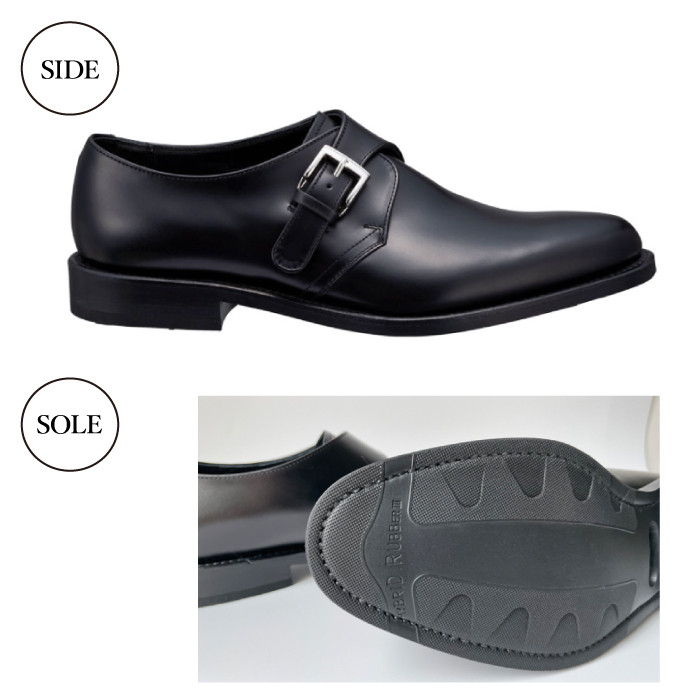 スッキリとした紐の無いデザインが特徴のモンクストラップ。