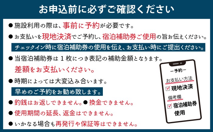 ※宿泊の際は事前に予約が必要です。その際に宿泊補助券を使用する旨をお伝えください。